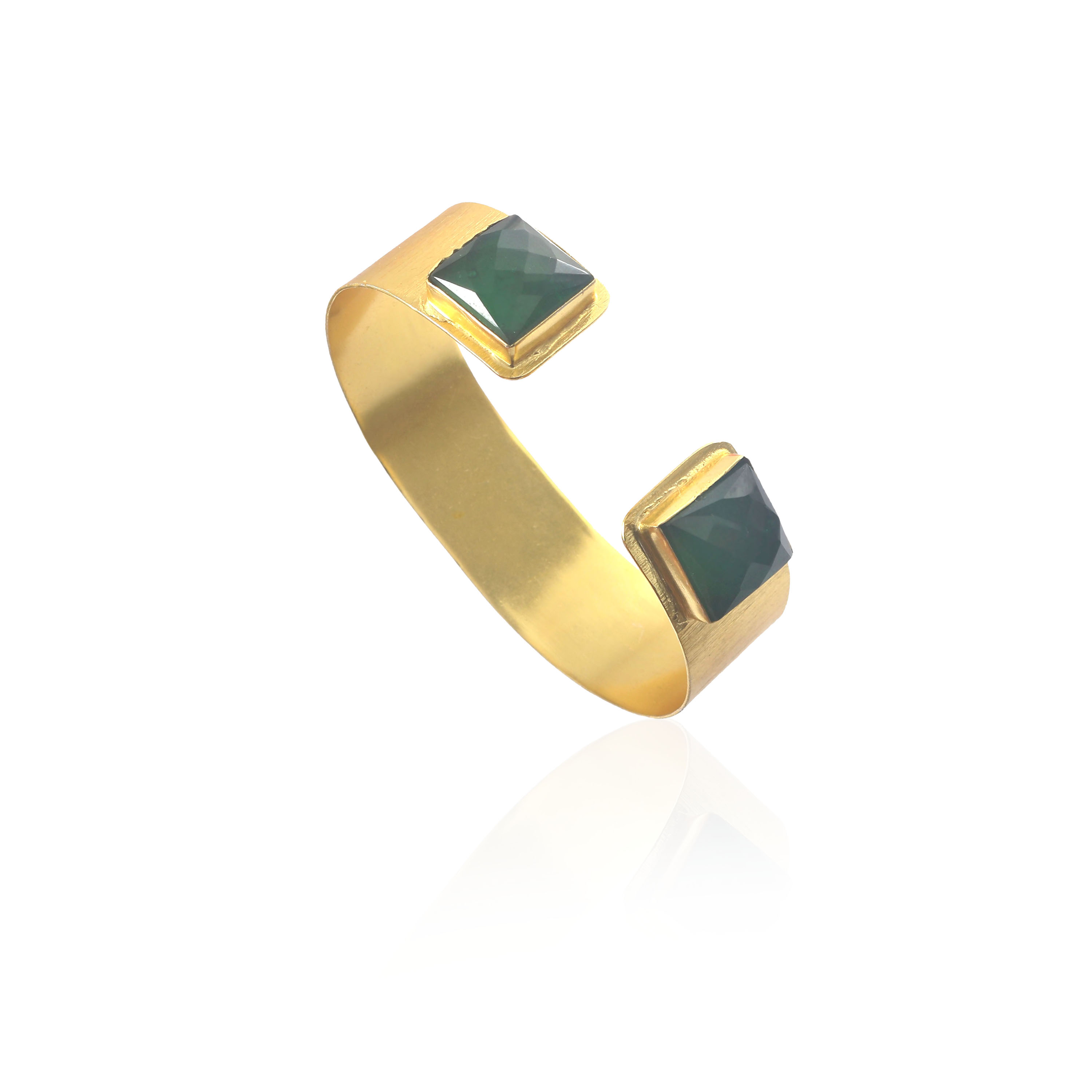 The centerpiece of this remarkable ring is a stunning green gemstone, evoking a sense of vitality and renewal. The golden color complements the green gemstone beautifully, creating a harmonious contrast that adds to the ring's allure.